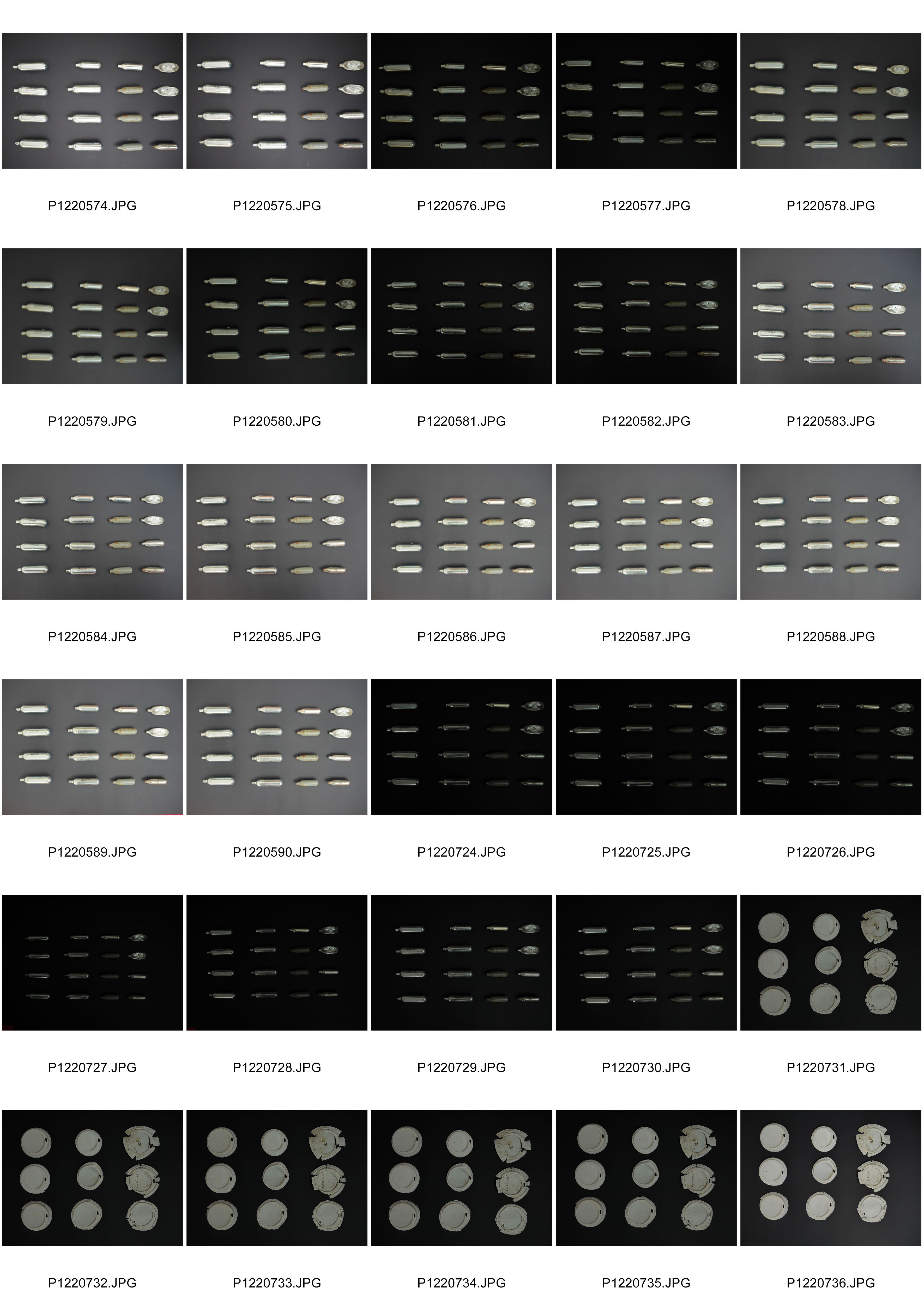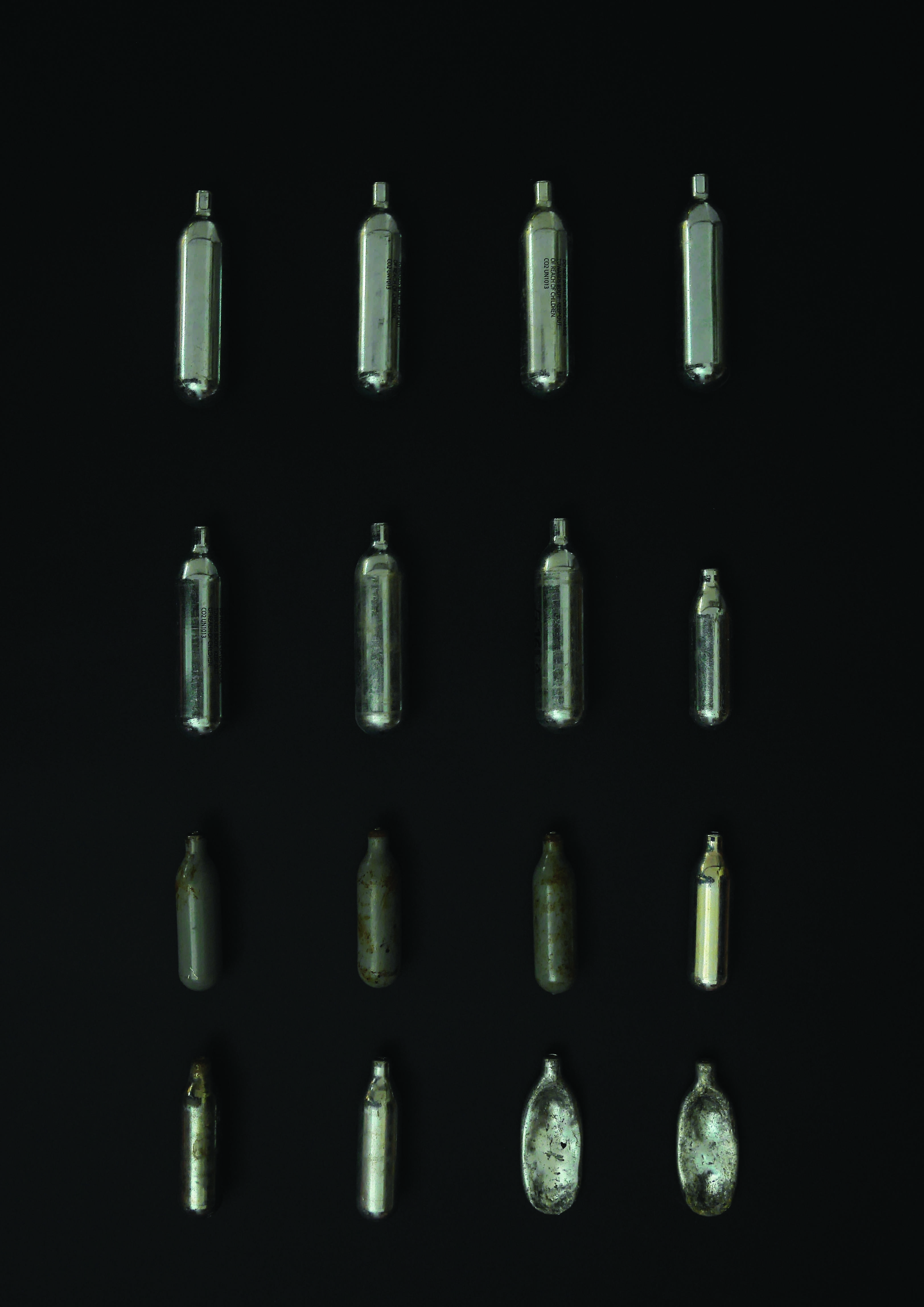 I decided the best way to do this was to lay out each collection on a black sheet of paper and then photograph them. I really liked the results, especially with the gas cylinders as the silver is a great contrast to the black background and the the reflection from the cylinders just added to it.