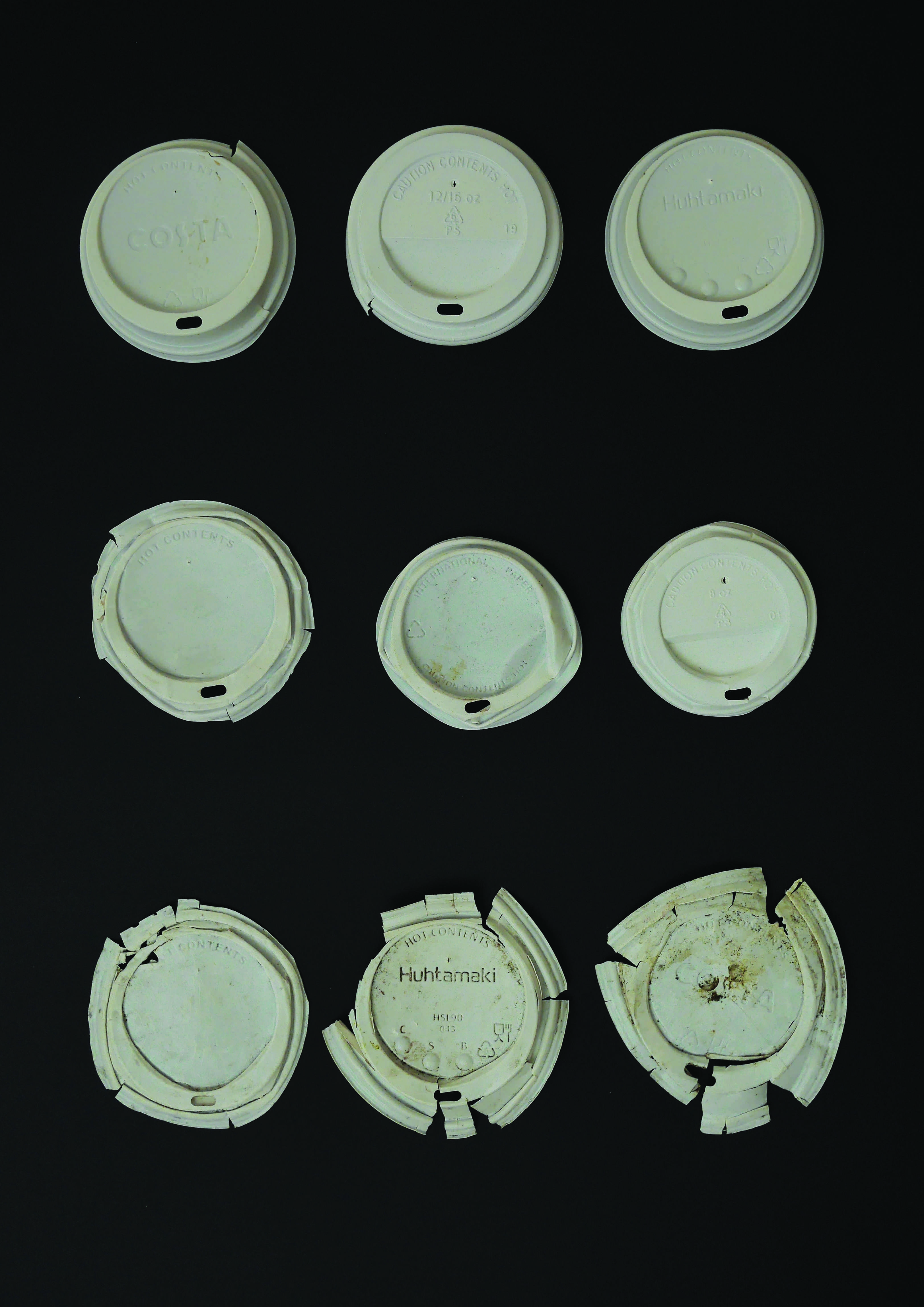 I wanted to display my individual collections of objects together so that they were the only thing that you focused on and so that you could compare the differences. Most people when looking at coffee cup lids for instance, normally would not take into consideration the difference in design and branding, or if they passed one on the street on the floor, would not think that's been walked over many times, or a car must have run over that. But when they are laid out next to each other, it makes you look more deeply into the object and while comparing them, would make you think why there is a difference between them.