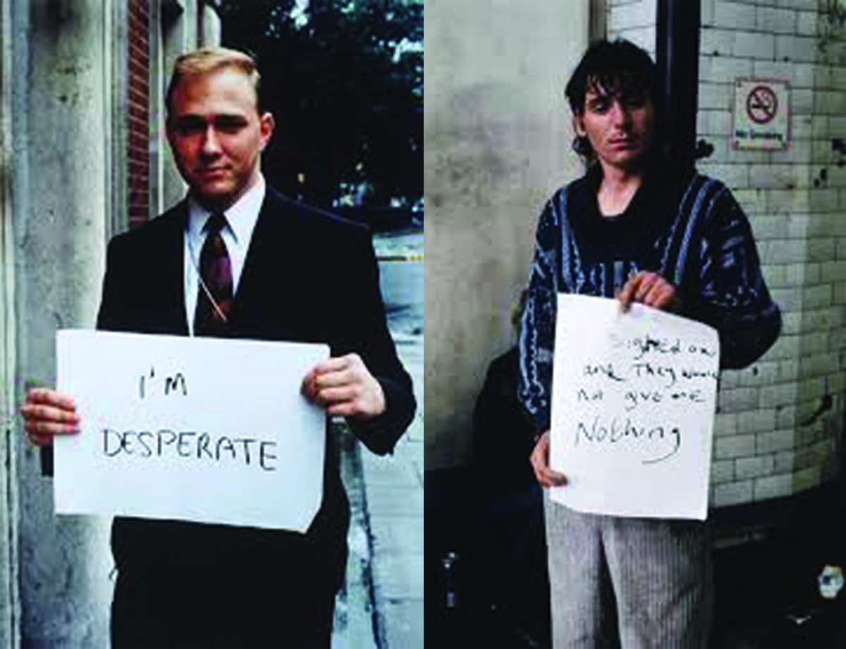 Gillian Wearing did a series of photographs in 1992-93 where people in the streets of South London, were asked to write what they were thinking on a sheet of A3 paper and hold it up in front of themselves. Wearing then took their photograph. The exhibition consisting of about 50 photographs, Signs that Say What You Want Them to Say and Not Signs that Say What Someone Else Wants You to Say.