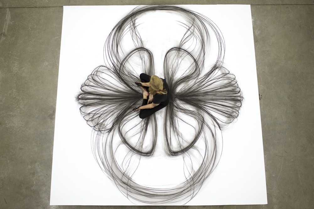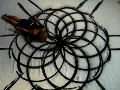 Heather Hansons approach to her art is by linking movement, her mind and painting. She says how she doesn't differentiate between these things, just combines them so that they naturally become one. She recalls dancing in the sand and on seeing her footprints realised how they left an image behind and how she could and did pursue this further as she saw it as something that she wanted to hold onto.
