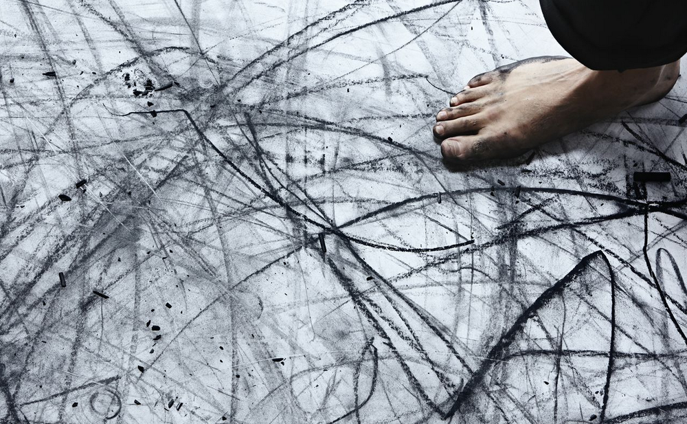 What I personally like about both Heather Hansons and Charlie Fords work, is how unpredictable the outcome of their work can be, and how it is their energy and emotions that create their movements to create the marking on the paper.