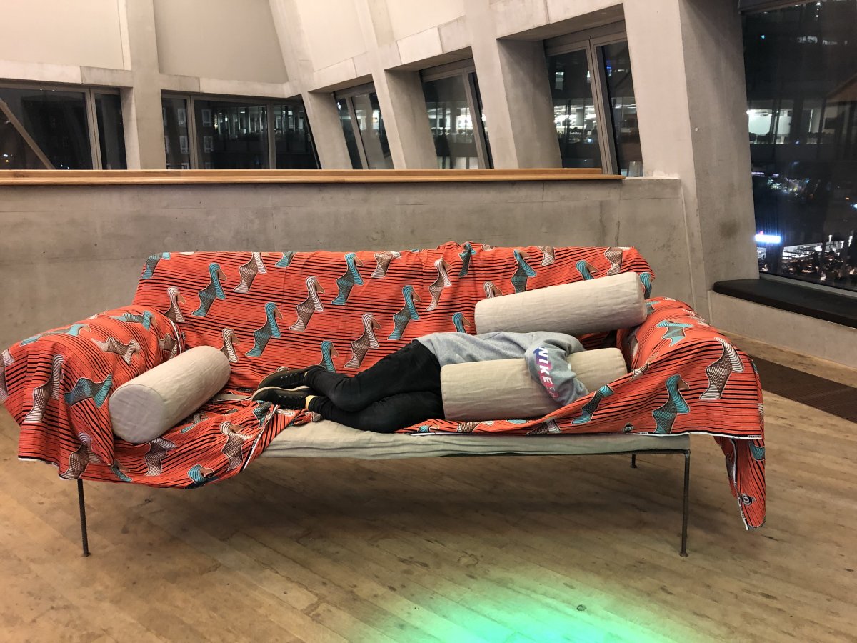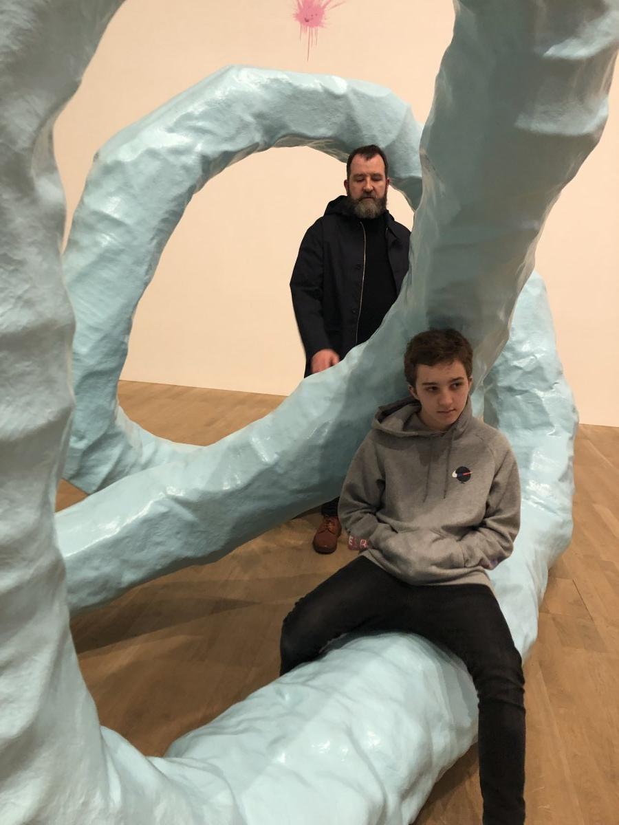 Just outside the Franz West exhibition were a couple of sofas and my brother decided to lie down on one, cuddling a bolster and covering his face. He was there for some time and lay so still that visitors to the Tate actually walked up to him slowly and peered down at him, some even took photos.