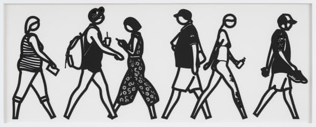 He says, ' Each one throws up surprises and opportunities that I could not invent – a tattoo or a tasselled dress, a goatee or the logo on a T-shirt. I have one group from the middle of the city and one from the beach. By making groups of six walkers I get a street crowd, and a list, and a kind of fashion parade'