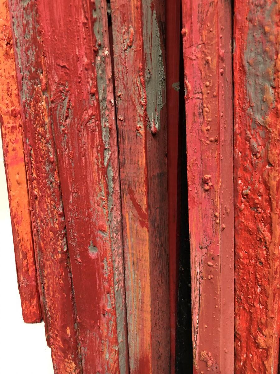 In both Georgie and Mum In Bed Hume has created his portraits faces by marking the enamel paint to create the features. I am not sure how Hume applied the features but I presume it was using masking tape and draft extractor as he did with 'Incubus'. Here he created ridges of paint to define the rectangles in his large household gloss painted doors.