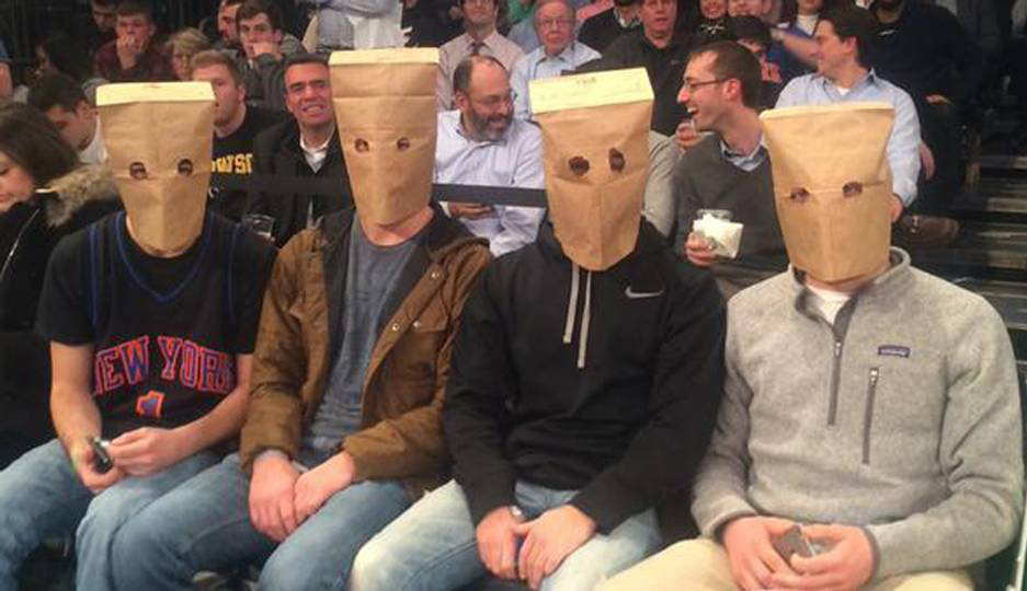 In America at big games like basket ball, the fans wear paper bags over their heads if their team is loosing badly- to show their shame and embarrassment.